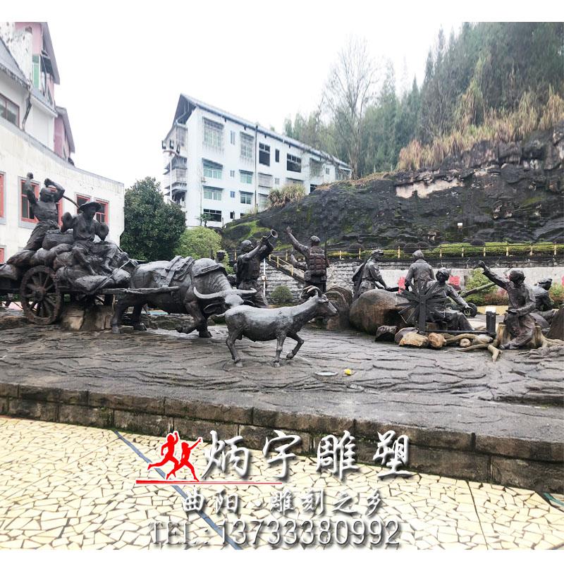 打鼓人物雕塑 牛車雕塑 軍人銅雕