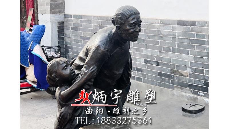 清初末期人物雕塑 童趣小孩雕塑 爺孫人物玩耍雕塑