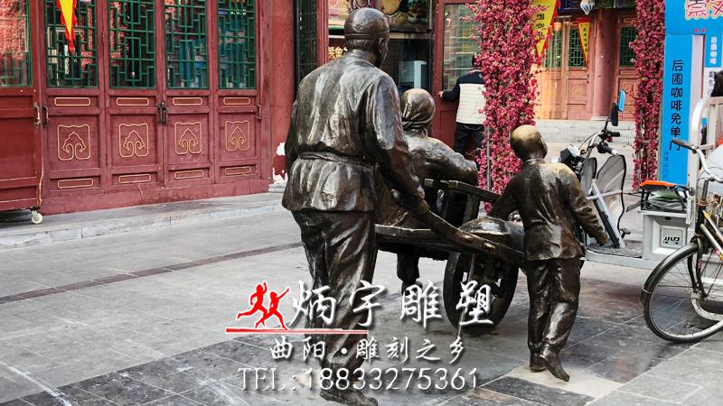 推車人物雕塑 一家三口雕塑 人物銅雕