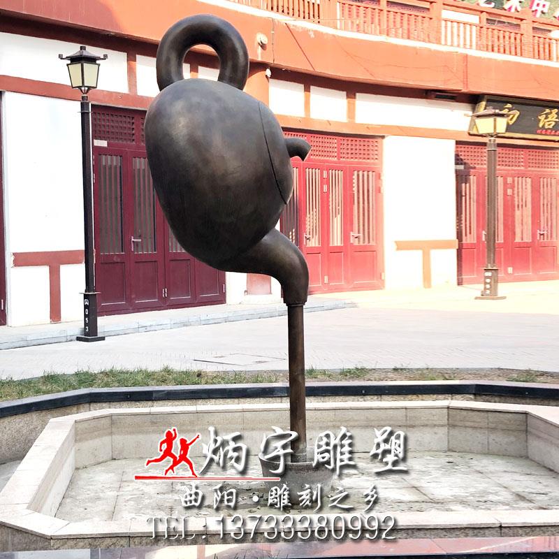 懸空流水茶壺雕塑 鑄銅雕塑 茶文化雕塑