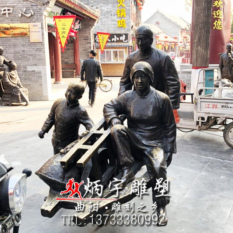 推車人物雕塑 童趣小孩雕塑 鑄銅雕塑廠家